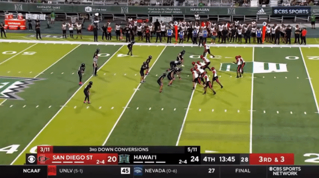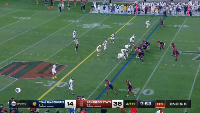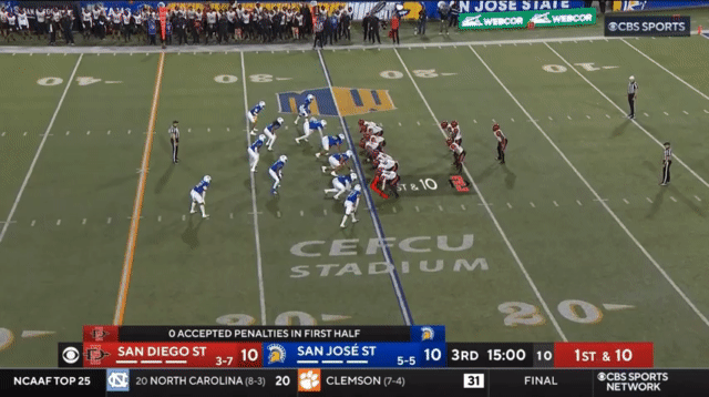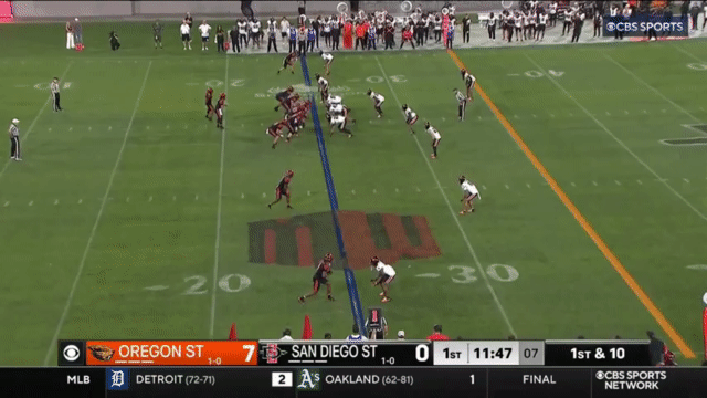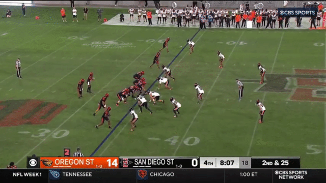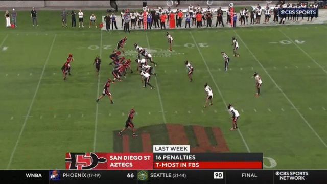 The trouble so far at SDSU is two-fold: (1) they have struggled to string together consistent drives, so rushing to the line just to go 3-and-out doesn’t make much of an impact, and (2) SDSU is bottom 3 in the FBS in penalties, which are also huge drive-killers. SDSU is averaging 114.5 penalty yards per game, which is an eye-popping number considering they had 179 yards of total offense against FBS competition last week. Against Oregon State, SDSU had just one successful drive the entire game, and it was capped by a goal-line fumble by the quarterback on an option run. The same offense was successful at Colorado because QB Shedeur Sanders and WR Travis Hunter are NFL 1st round talents that could always find a way to make plays to keep drives alive. The current SDSU iteration has sputtered and stalled at times. The SDSU offense needs to stay in rhythm, but this is a new system on a new team, so they are surely having some growing pains.