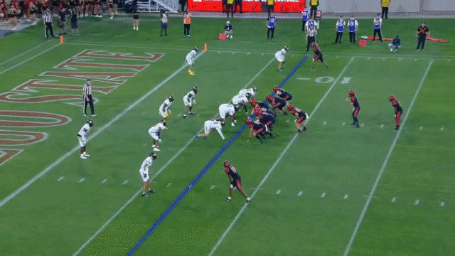 SDSU has a history of stellar running backs (Marshall Faulk, Rashaad Penny, Donnel Pumphrey, etc), and they will likely again lean heavily on their run game to alleviate the pressure off their true freshman quarterback. You may remember the last time these two teams faced off, SDSU’s Donnel Pumphrey ran for an absurd 281 yards, eclipsing Davis Webb’s 522 passing yards and Chad Hansen’s 190 receiving yards in an upset victory for SDSU. With Lewis’s power run plays added to the offense, the idea is that they can either hit explosive plays, or grind a defense down with the run (grinding down a defense to close out games is something Air Raid offenses often struggle with).