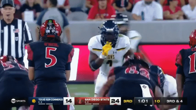 SDSU has leaned so heavily on Cooper in their first two games that it’s not immediately clear who will relieve him. Former USC speedster Kenan Christon was the presumed backup, but he is out until midseason after having ankle surgery. Last year’s top running back was Jaylon Armstead, who is also a power-RB. Like Cooper, Armstead also does a good job fighting through contact to pick up extra yardage:
