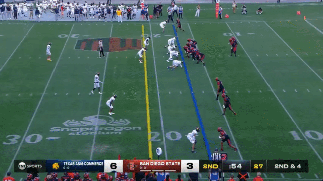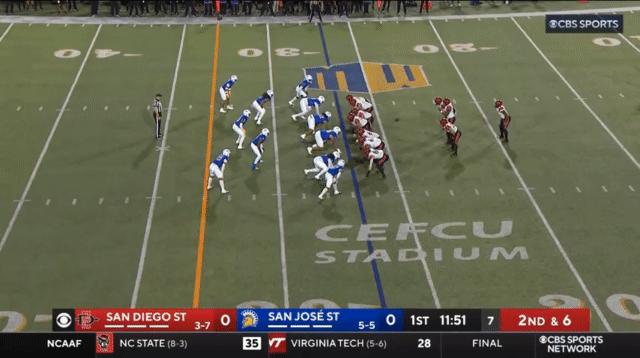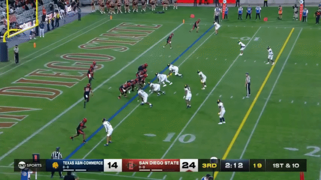 SDSU has primarily relied on zone blocking schemes so far this season. When the offensive line can outmatch the defense, Cooper is liable to get to the second level for a big run, although he lacks breakaway speed: