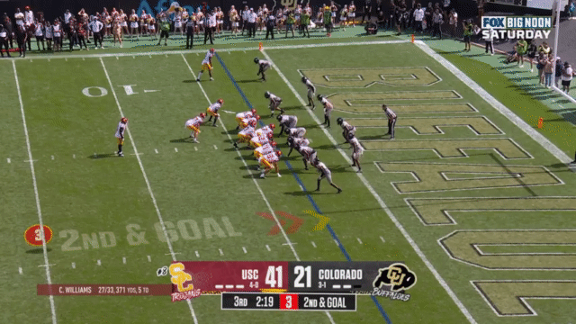 As mentioned earlier, it’s important that Sean Lewis’s quarterbacks can run an effective RPO. Here O’Neil fools the entire defense to break off a nice gain: