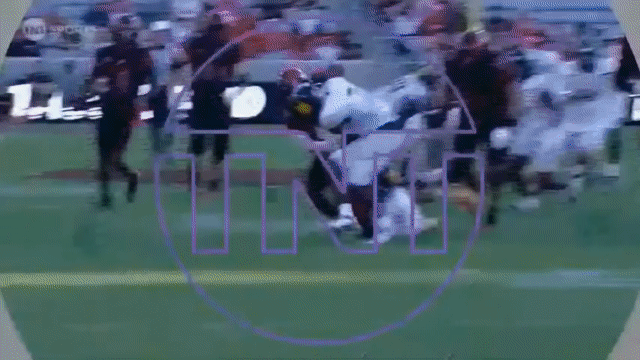 The focal point of this offense is the 5’8” 200 lbs, Kent St/Ball St transfer, Marquez Cooper. Cooper was previously a running back under head coach Sean Lewis back when both were at Kent State, and it’s where Cooper was an All-Conference (MAC) running back. He runs with a powerful base and low center of gravity, which allows him to run through tackles and churn forward for extra yards on contact: