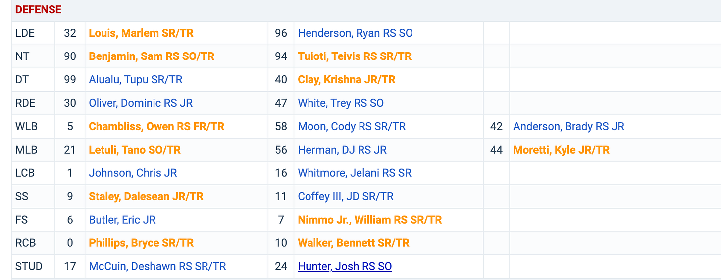 DE Marlem Louis, DT Sam Benjamin, DT Krishna Clay, DE Dominic Oliver OR Trey White