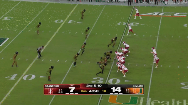 Because of Stanford’s offensive line issues, of Micah Ford’s 493 rushing yards, 443 of them have come after contact. He does a good job of picking up additional yards and creating for himself: