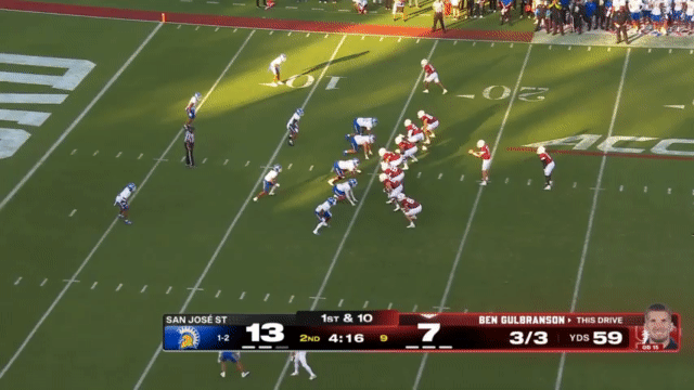 Lining up in the slot is WR Caden High. High also does a good job of gaining separation with his route running: