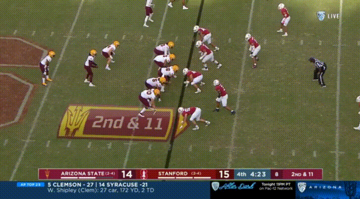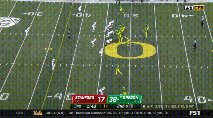 Here’s an example from when everything was going right for Stanford; naturally, in their game against a toothpaste company weak FCS school:
