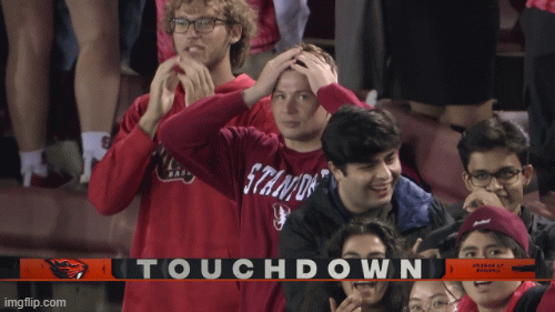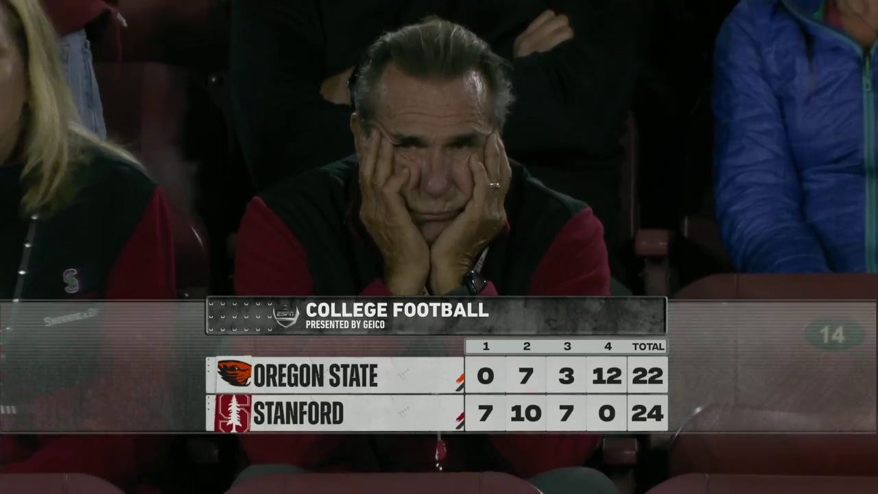 Take, for instance, this fan of Stanford football. Despite Stanford holding onto a tenuous lead, he has the defeated face of a fan who has already lost: