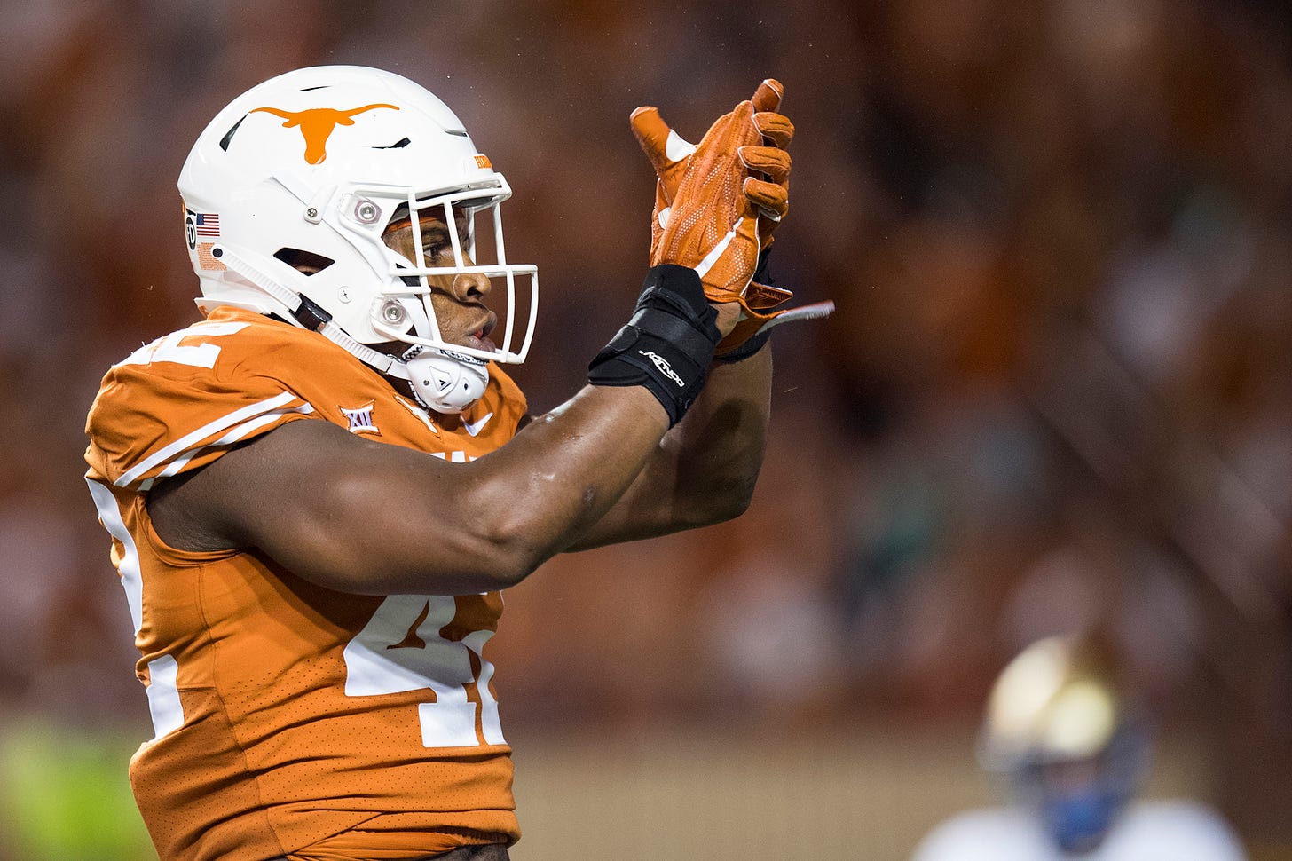 A 6’2, 251-pounder and one-time Houston commit who followed Tom Herman to Austin in 2017, Bimage spent the 2020 offseason dropping weight to make the transition from playing heads up against offensive tackles to getting the opportunity to more frequently play on the edge. Ultimately, the Brenham product lost 20 pounds in an effort to capitalize on the flashes that he showed late in 2019 when he was able to use his speed and explosiveness against Texas Tech to force a strip-sack and add another quarterback hurry.