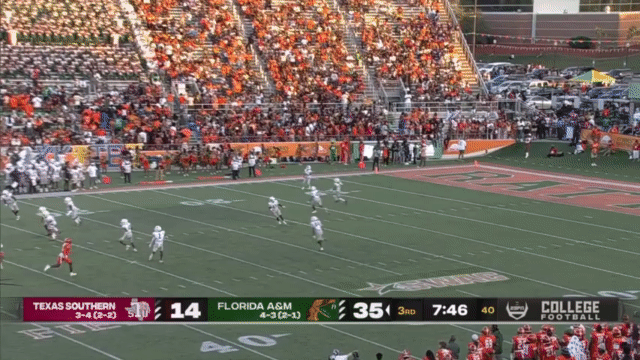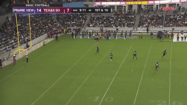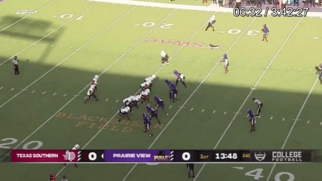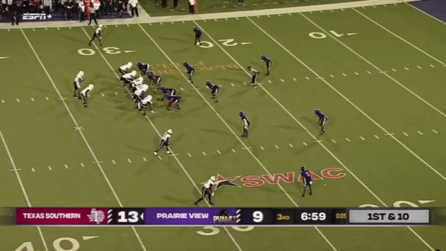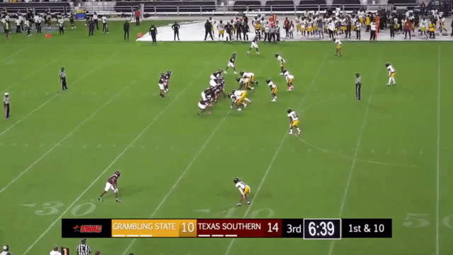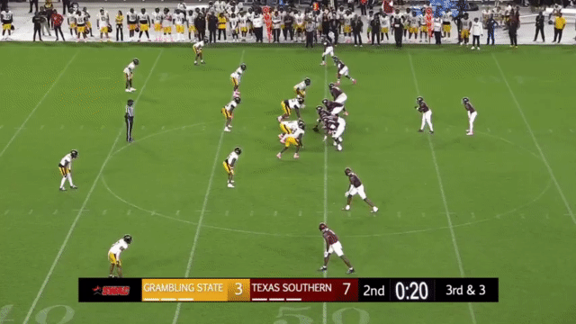 Texas Southern’s leading receiver last year is Trenton Leary. Leary is versatile and capable of lining up outside or inside, but he was most often lined up as the Z-receiver. Leary is an undersized receiver at 5’9” 155 lbs., but what stood out most to me was his crisp route running: