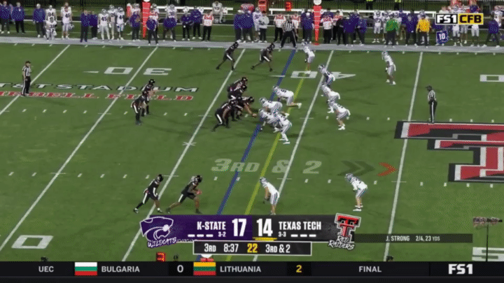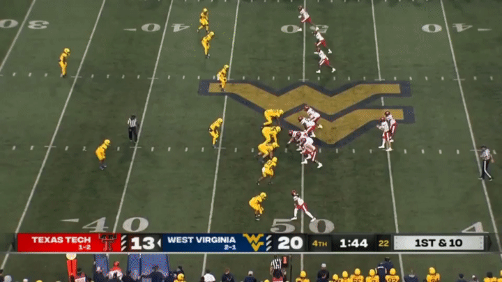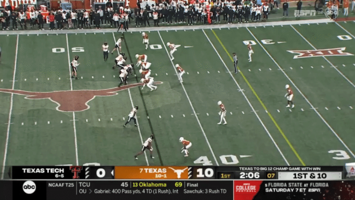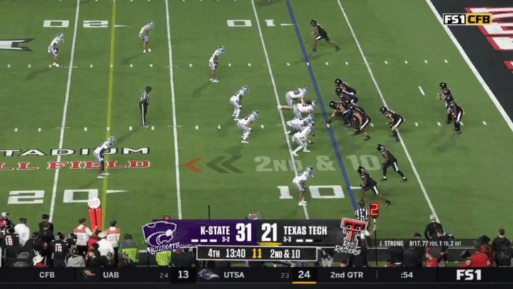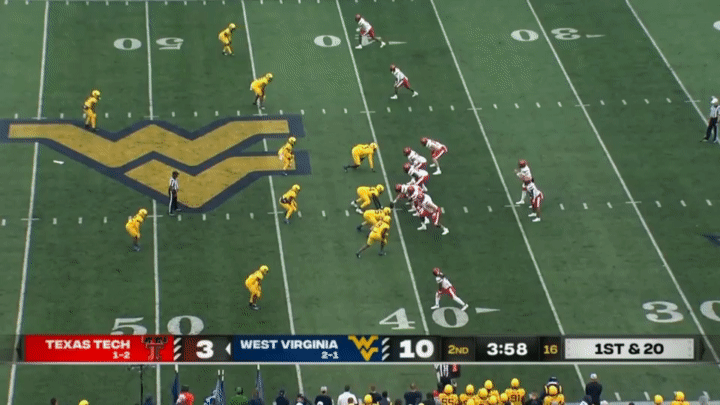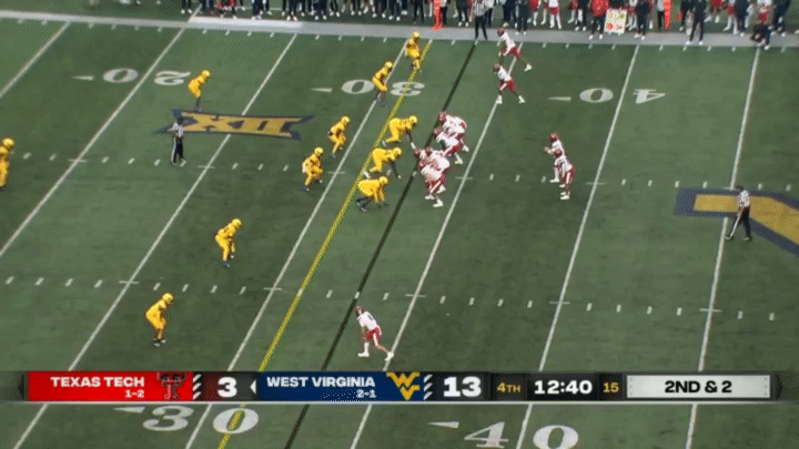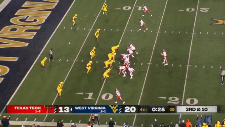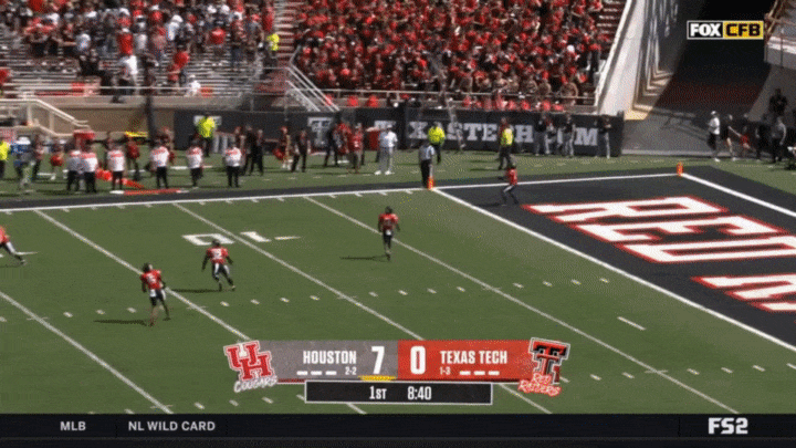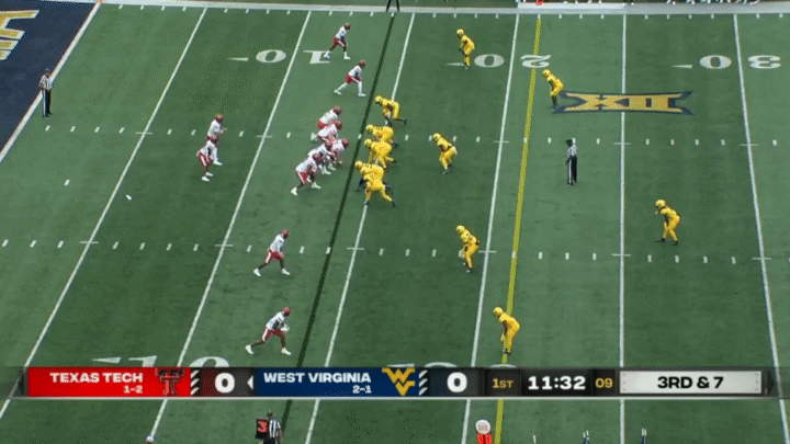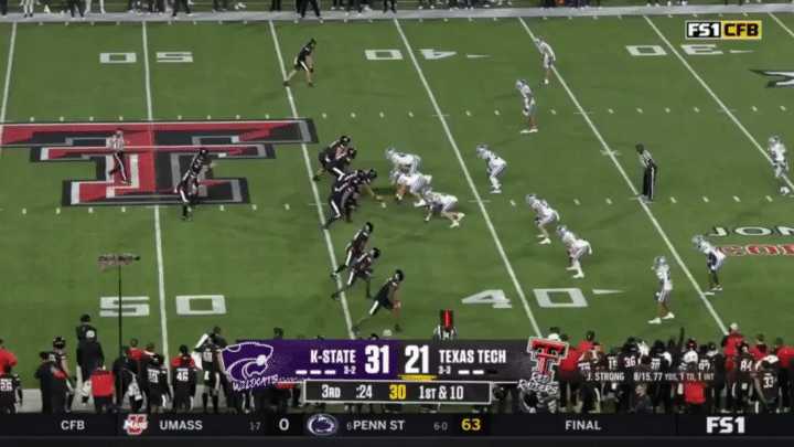 White is also their best YAC (yards after the catch) receiver. Texas Tech likes to move the ball with a lot of short or safe passes, and here White finds some room to run after the catch: