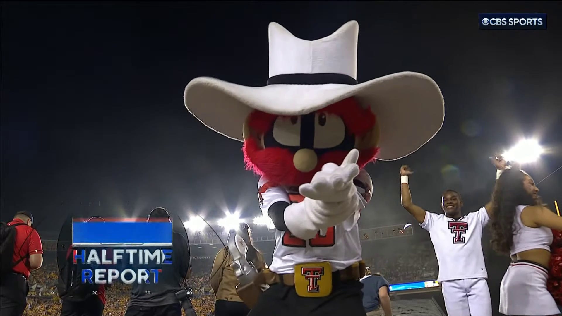 Before we get into the nitty-gritty, let’s take a look at some Texas Tech traditions. Texas Tech was founded in 1923, and by 1936, they started the tradition of the “Masked Rider”—a masked caped crusader who led the team onto the field on horseback, which was deemed “very Texas” at the time. By 1971, the Southwest Conference banned lived animals on the field of away games without prior approval of the home team. So Texas Tech developed their own mascot, deemed “Raider Red”, who is not at all a caricature of Yosemite Sam: