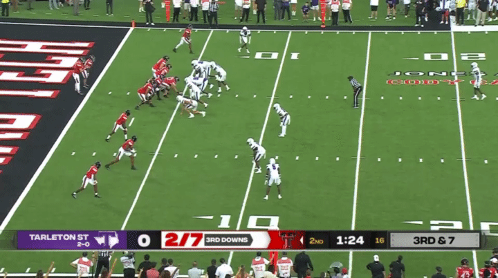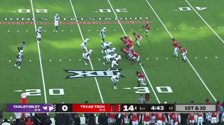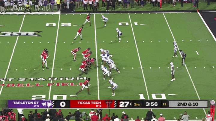The star of the Texas Tech offense is their running back, Tahj Brooks. Brooks is an absolute workhorse of a running back, and is second in the FBS in rushing attempts per game with 22.5 attempts/game (and he’s first in the Power 5). Brooks has more carries than Morton has passing attempts. The offense runs through Brooks, and everything else is secondary.