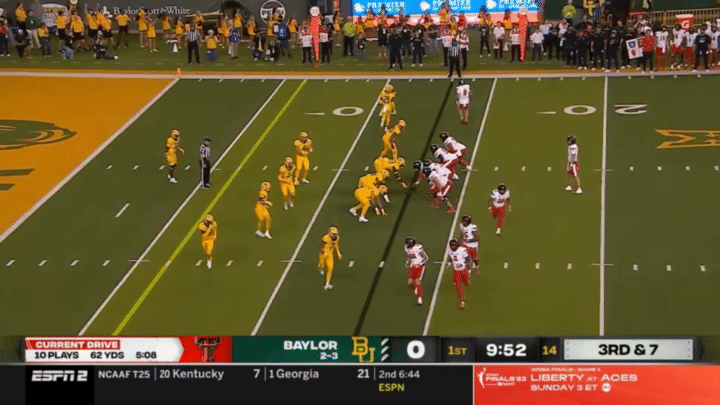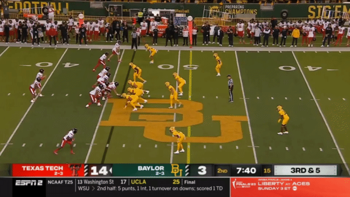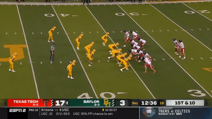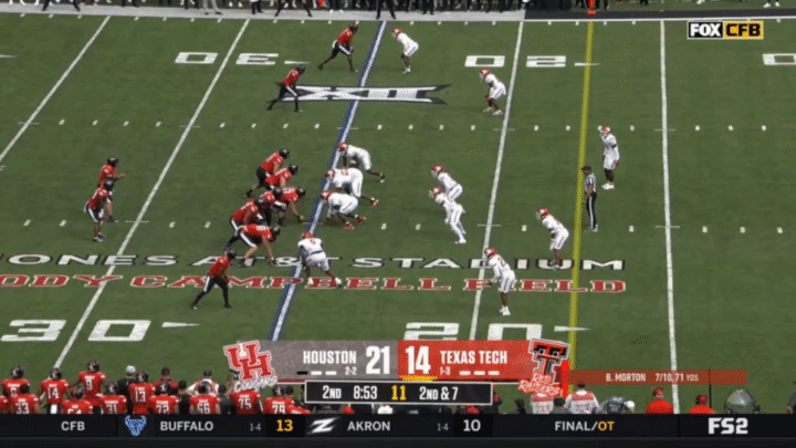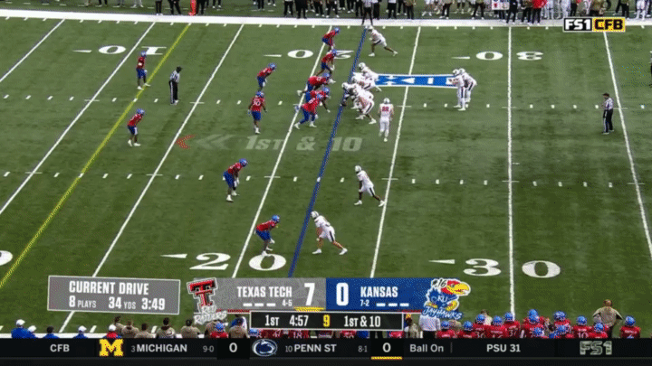 If I had to distill this Texas Tech offense down, I’d say their one true strength is their blocking ability. It’s something that is easily overlooked and often underappreciated, but the success of the Texas Tech offense is predicated on their blocking ability all over the field. The offensive line sets up runs by the running back, while the skill players do an excellent job of blocking downfield. Their ability to block well is one of the key factors in allowing their offense to pick up a couple of yards on each play.