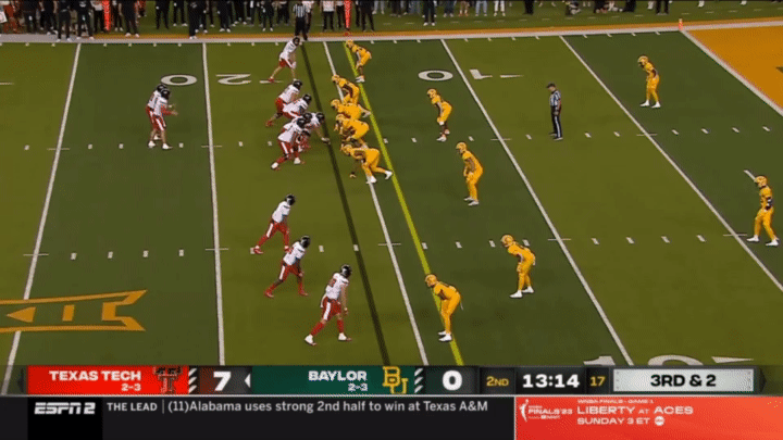 Even though Texas Tech is playing out the season with their original backup quarterback, the receivers are the biggest weak spot in this offense—and that was even before two of their starters, Jerand Bradley and Myles Price, opted out of the bowl game to enter the transfer portal instead. I watched an entire season of Texas Tech football and found a lot more to nitpick than I did to highlight with the Texas Tech receivers. I saw lazy, half-hearted routes, poor releases, struggles to get separation, drops, and frequent miscommunications with the quarterback (e.g. quarterback throwing to a spot while the receiver runs a different route— no way to know for sure who is at fault, but if I see the quarterback yelling at the receiver after the throw, I think it’s fair to guess that it was on the receiver).