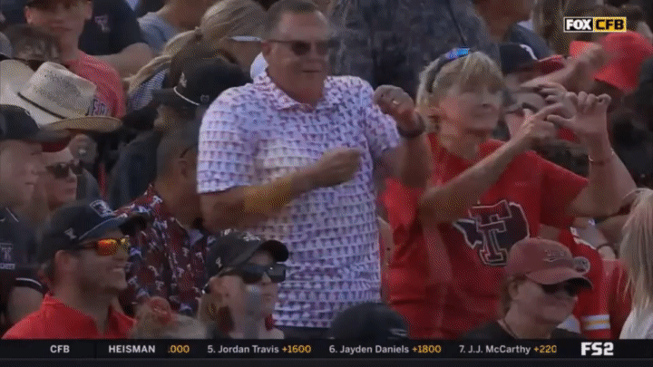 When Cal played TCU in the Cheez-It Bowl, I documented their “horned frog” hand signals. Texas Tech uses the “guns up” hand gesture, which most certainly speaks for itself: