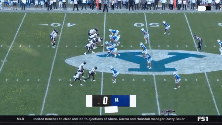 There’s a million examples I could have pulled, most of them routine runs, but here is the standard Tahj Brooks running play: