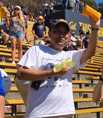 But to reduce him to basketball analysis and "Robot Larry" would be to miss what made him so special as a Cal fan. It would peak through sometimes in his writing - especially when he went to a game in person, but he was never analytical in person. He was the fan who always believed. In the parking lot before the AQI WSU game, he went around the tailgate "But what if we win? We can win this game," finally betting TwistNHook a million dollars (writing for CGB obviously made everyone wealthy) and making everyone promise to meet him at the 50 yard line. And we did. There are a million memories like that - us heckling Brianna Stewart, the best woman basketball player in the world, so loudly, Cal fans were telling us to be quieter, his absolute shock and depression after a loss to Harvard, so much so that he failed to join Rob, Nick, Golden Oso and I for tacos at his favorite taco place in the world, and he really loved those tacos. He kept muttering "we're going to win this game" during the Cheez-It Bowl, even as hope slipped away. He had an absolute belief in his ability to help the Cal defense dial up turnovers, but wouldn't use that ability until the highest points of leverage in the game.