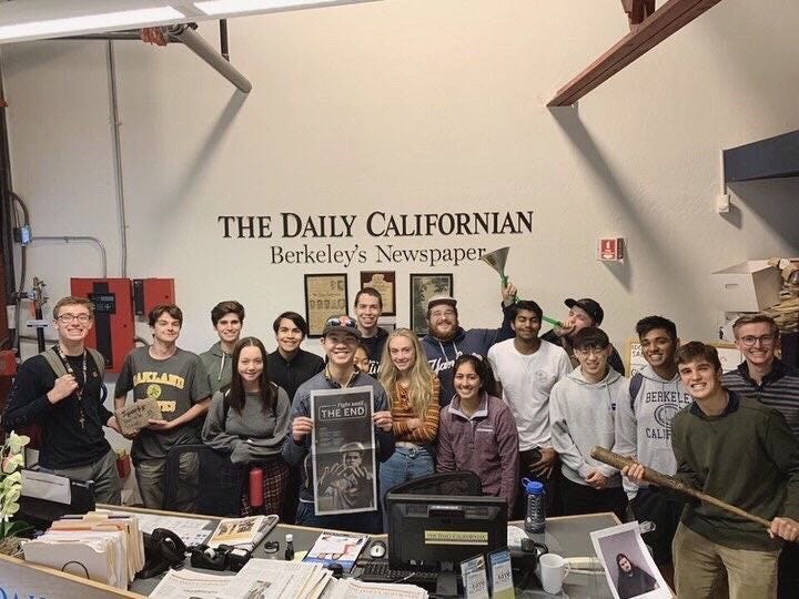 Over the last decade and a half, The Daily Californian has had to get creative to ensure it can continue its weekly operations. According to current editor-in-chief Josh Yuen, “in 2008, the editor-in-chief at the time, Brian Thomas, made the decision to cut print for [sic] five days to four due to budget constraints.” As media evolved, the publication added mobile advertising and other sponsored content, but they still had to cut over $120,000 to their annual budget and still ended the year with deficits. There’s currently a $2.50-per-semester fee (a third of which goes toward student financial aid) that supports the paper’s operations, which is set to expire in 2022.