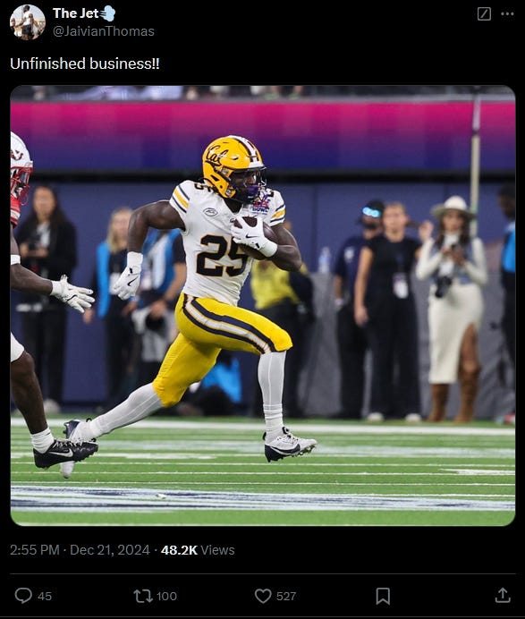Cal returns their 2024 rushing leader, Javian Thomas