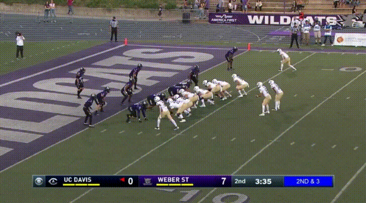 The fact that UC Davis ran this play so much despite limited success makes me think it was a part of setting up a different play later, stretching the field horizontally so they could take advantage of something on the defense later.