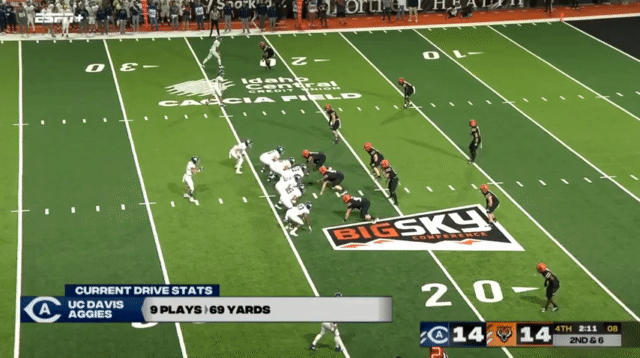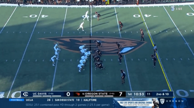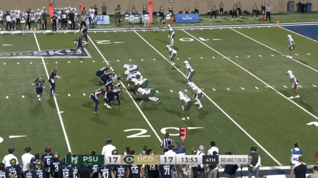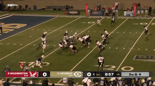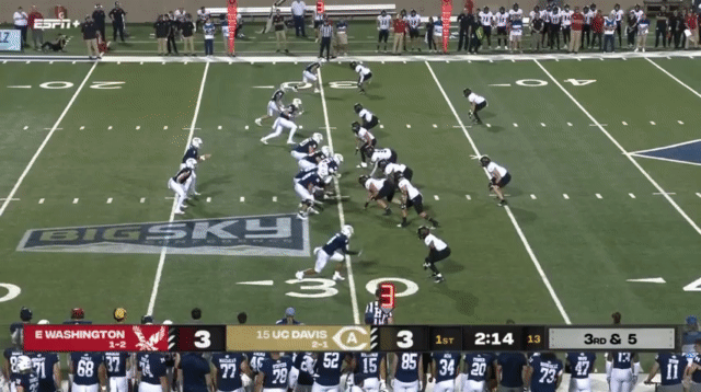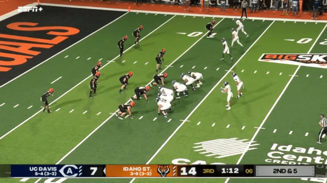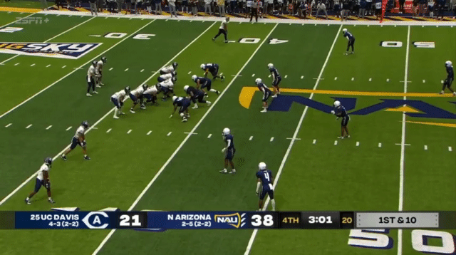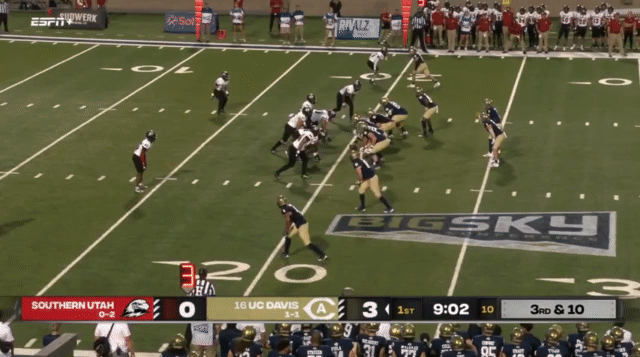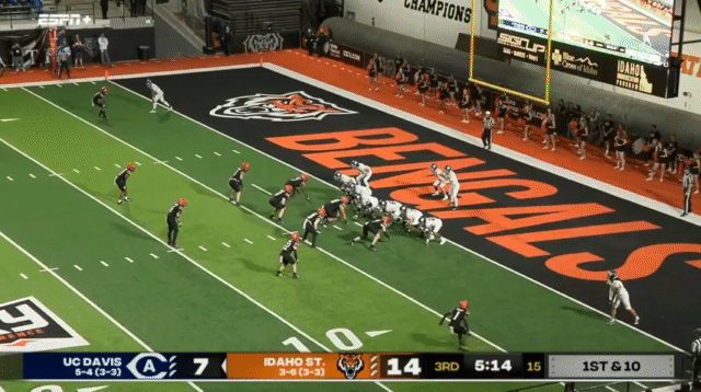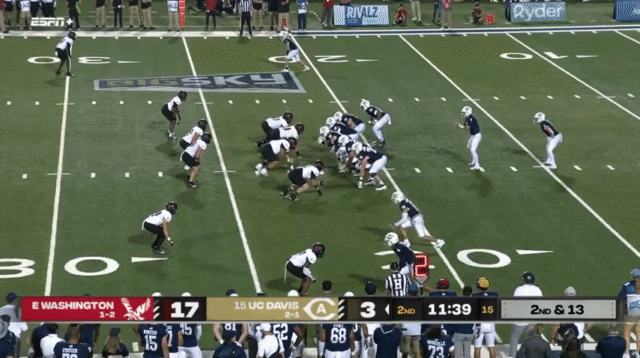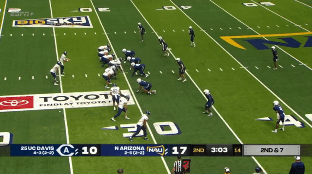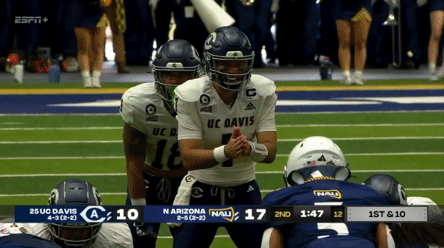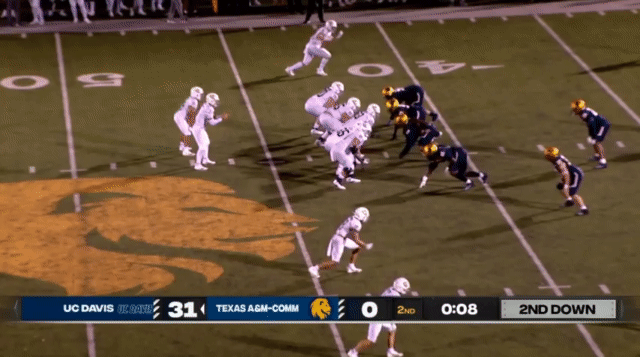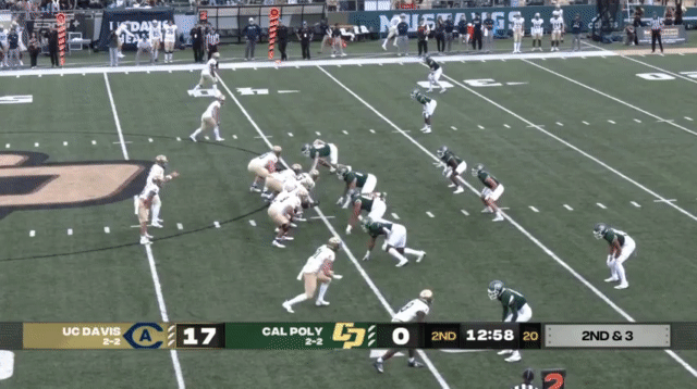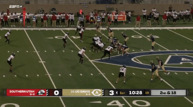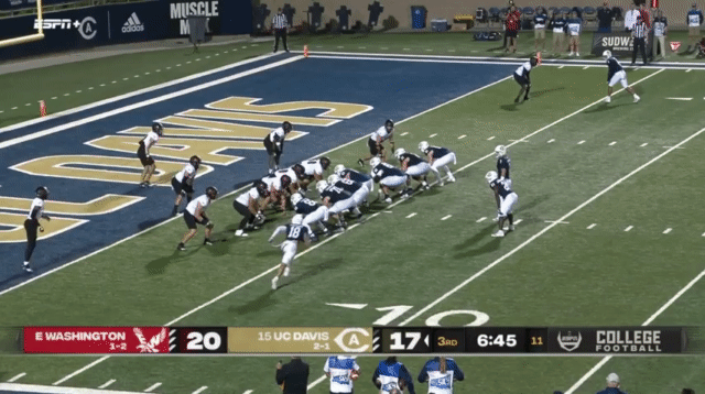 Further, UC Davis’s offense was stale and repetitive, and all their jet sweeps and motions were no longer fooling defenses. Hastings showed some nice arm strength his freshman year, but last season he rarely took deep shots down the field.