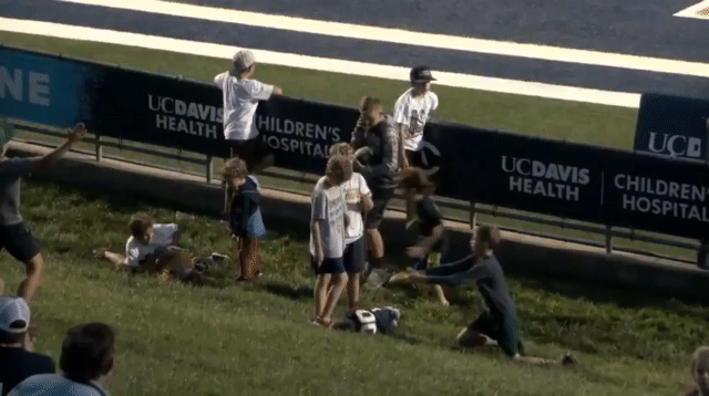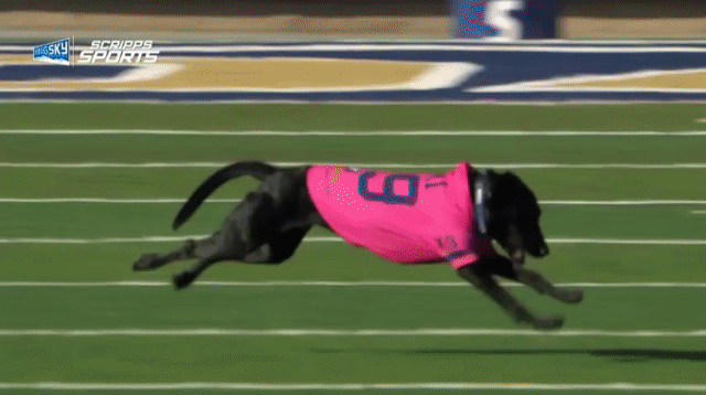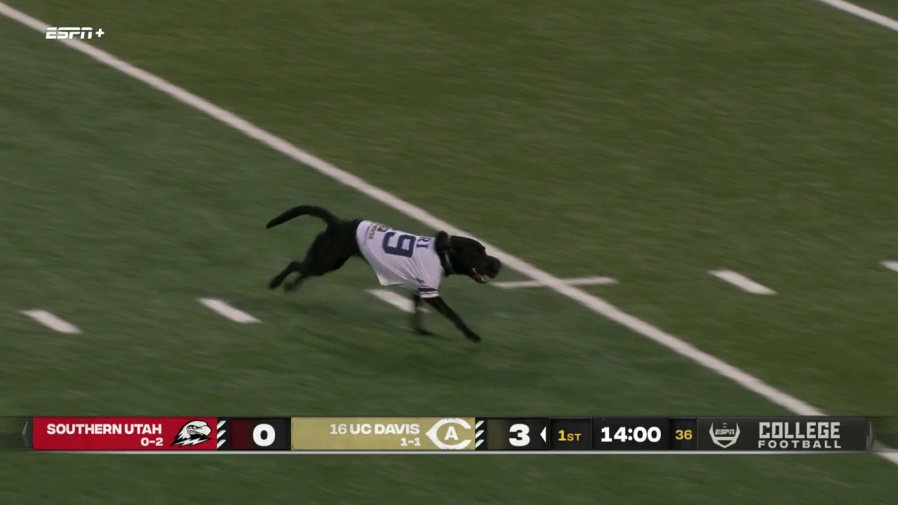Of course, the real star of the UC Davis football team is their new star receiver retriever, Cori, who fetches the tees during home games. Colorado has Ralphie the Buffalo, Auburn has a golden eagle, UC Davis has a tee retriever… and you’re telling me we can’t have a bear to fetch the tees after (or preferably during) kickoffs? My understanding is that bears are very trainable. Someone please look into this.