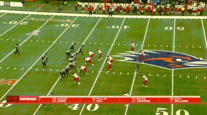 The safeties I was expecting to see—thanks to the preseason UNLV depth chart—were Tyson Player and Bryce Jackson. I see now (shortly before this article is to be published) that Bryce Jackson transferred to New Mexico State. Tyson Player is still on the roster, but no injury news or any word on him. So just to be safe, here he is defending a pass:
