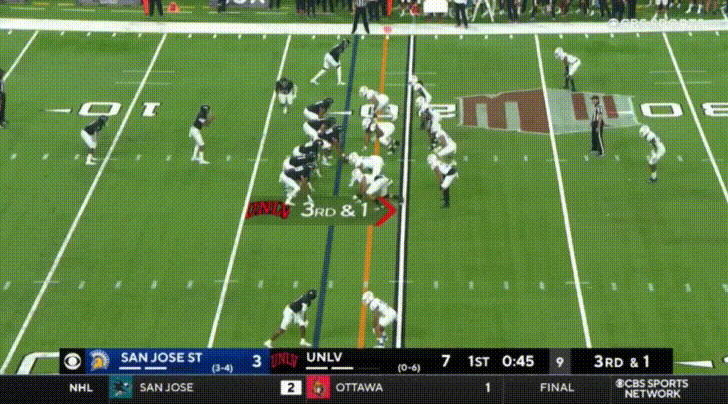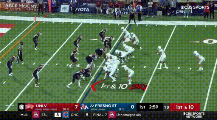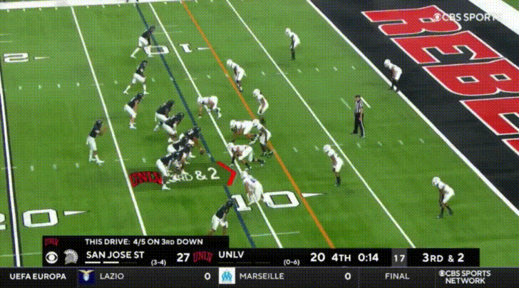UNLV picked up a new starting left guard via the transfer portal, Preston Nichols, from FCS Charleston Southern. I didn’t really intend to put a bunch of lowlights here (and I have way, way more if that were the point), but I just wanted to make the point that UNLV’s offensive line was game-breakingly bad last year. One factor that should help this year is a much more mobile quarterback returning from a season-ending injury early last year.