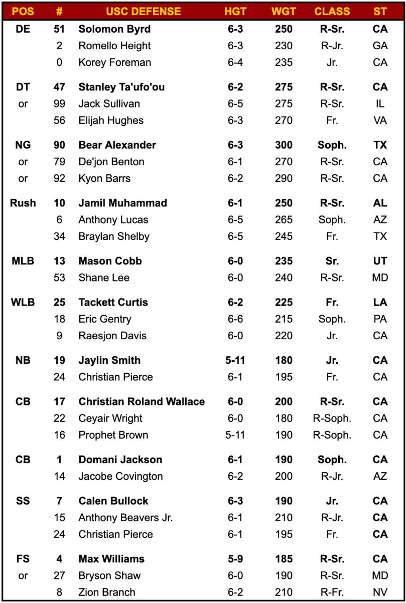 USC runs a mix of base 3-4 and 3-3-5 variation
