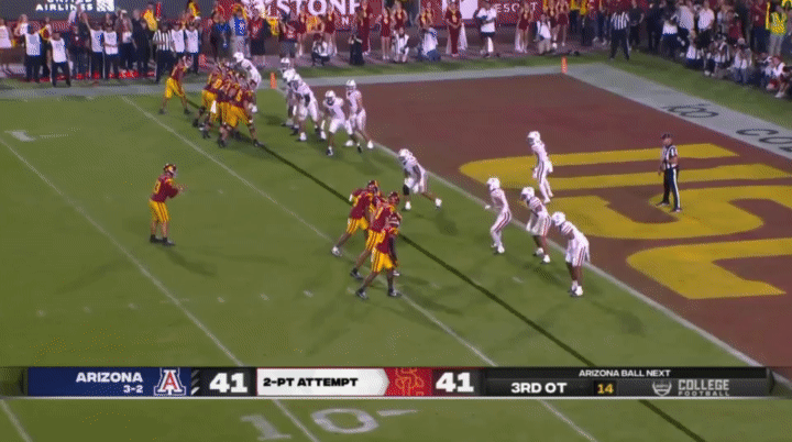 The following play was the game-winner in triple overtime against Arizona, and like a lot of USC plays this year, I am not really sure how it was supposed to work beyond “just give Caleb the ball and let him do something” and yet…. it worked: