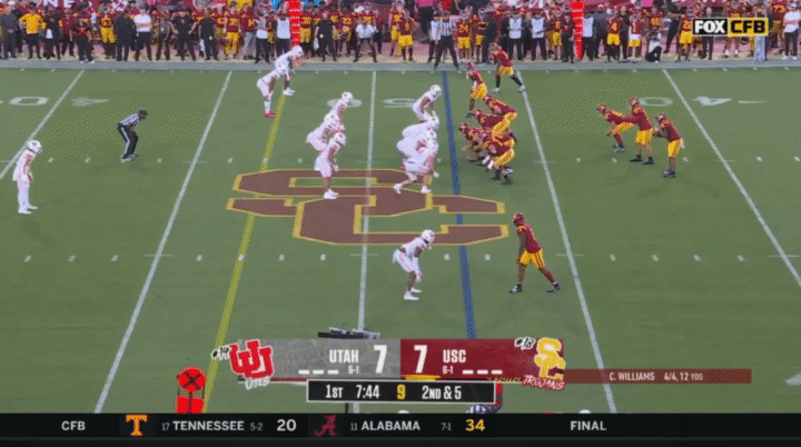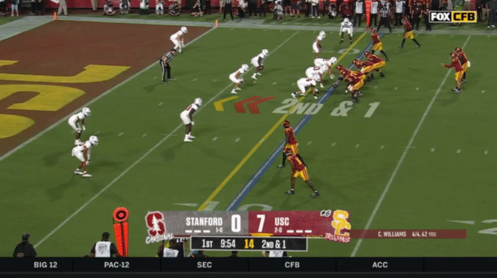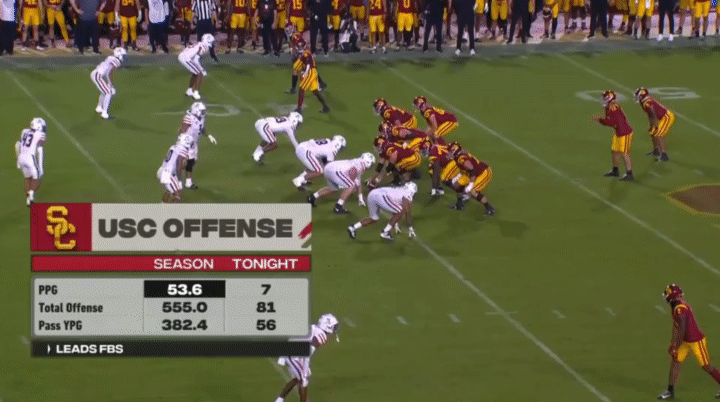 Although you might expect USC to be a very pass-heavy team with the reigning Heisman winner, they actually run the ball roughly 45% of the time. In addition to keeping the offense balanced, this run/pass split can be partially attributed to the light boxes that the USC run game often faces (because teams are so worried about Caleb Williams).