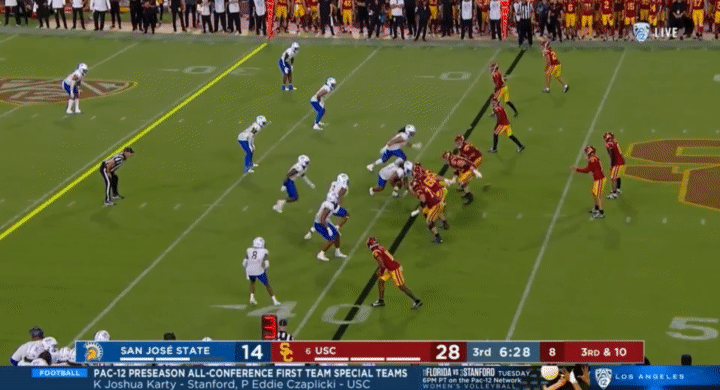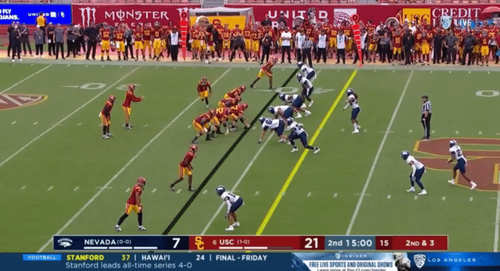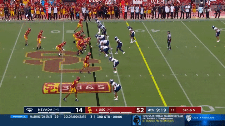 The other slot receiver is true freshman Zachariah Branch, a 5-star recruit and the #1 ranked WR from the class of 2023. Branch is incredibly fast and explosive, and has shown a lot of promise already (which you’ll see more of in the special teams section below). Branch is a natural playmaker, and USC will try to feed him the ball in space or in the run game (e.g. on a reverse), because he can make plays happen: