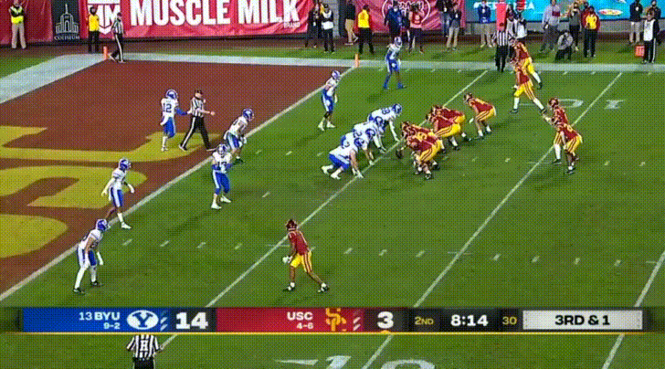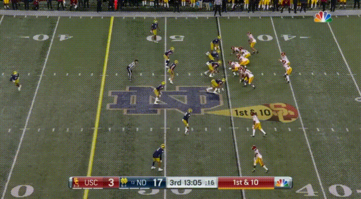 In the following play, Ingram shows off some nice cutting ability, although (like many seemingly successful USC plays) it’s ultimately negated by a penalty: