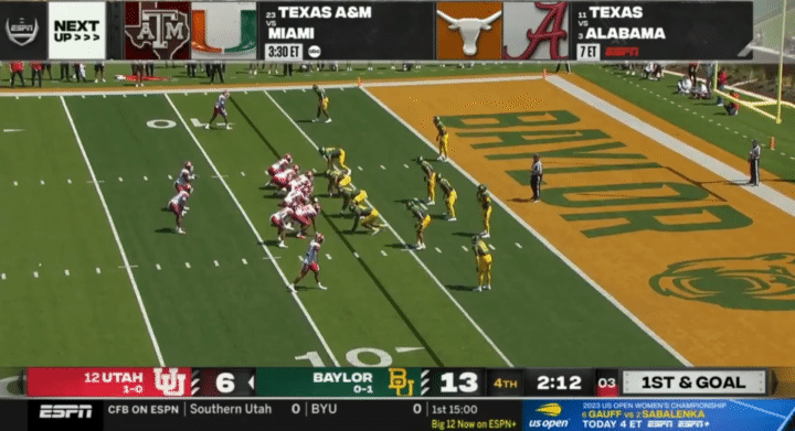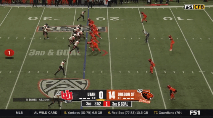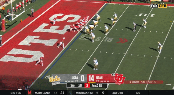 One of the main strengths of the Utah offense in recent years has been the play of their tight ends. One of the tight ends from last year, Dalton Kincaid, went in the first round of the NFL Draft last year. The other starting tight end, Brant Kuithe, opted to return for another year, but is currently rehabbing from an ACL injury (whose knee surgery was performed by the same doctor who did Cam Rising’s surgery), and has yet to make an appearance. Reports are that Rising is closer to return than Kuithe, so I will opt to omit the clips here as Kuithe is not expected to return for the Cal game. Kuithe is an NFL-caliber talent and a fantastic college player, although his NFL Draft grade is a bit of a question mark as he’s considered a “tweener”—between a wide receiver and tight end. At the college level, he’s a fantastic tight end and receiver, but some NFL Draft scouts might consider him too small to play tight end at the next level, and perhaps not enough of an athlete to play wide receiver in the NFL. Kuithe is a fantastic slot receiver, showing excellent route running skills and short-area quickness, and he was definitely Rising’s preferred target as a lot of the offense ran through him (even screens, etc., showing that the Utes trust his run after catch ability as well).