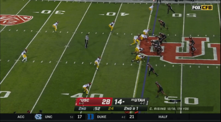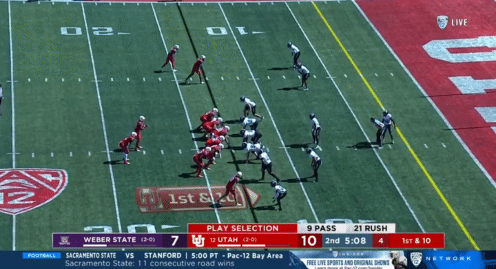 If Rising is making his first appearance back from injury against Cal, I wouldn’t expect to see designed run plays like the following, but last year Utah would also use Rising in the run game: