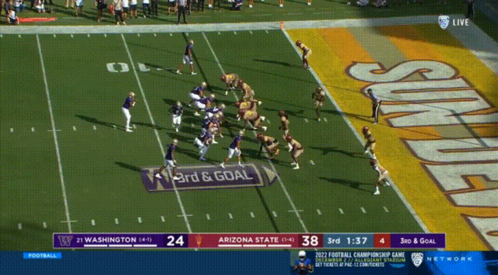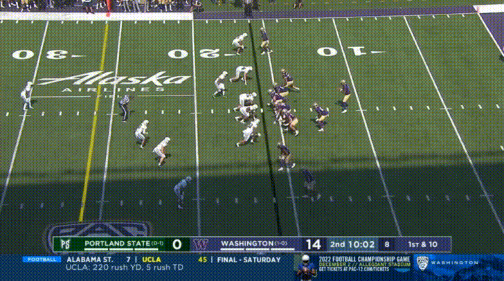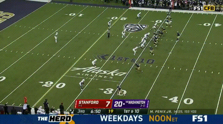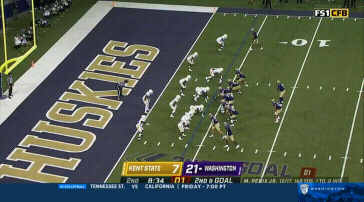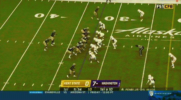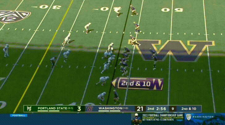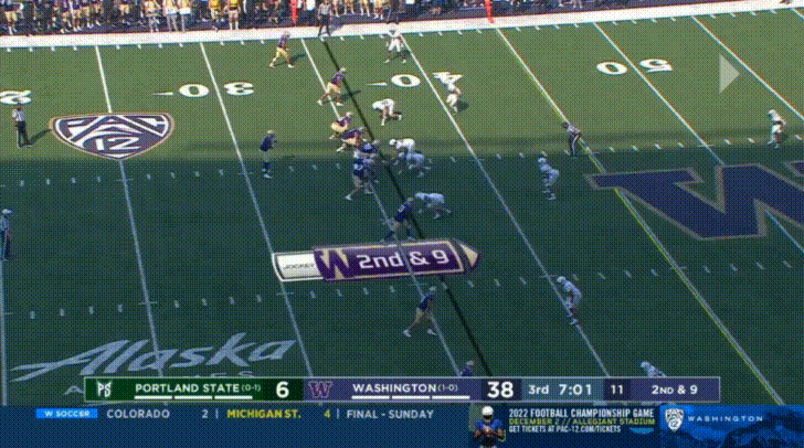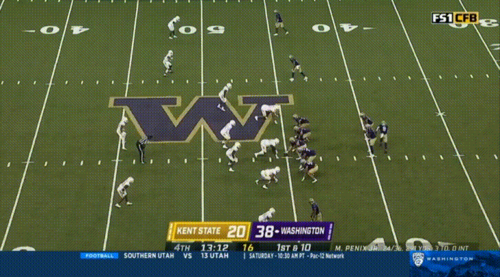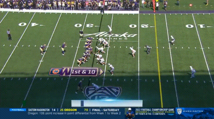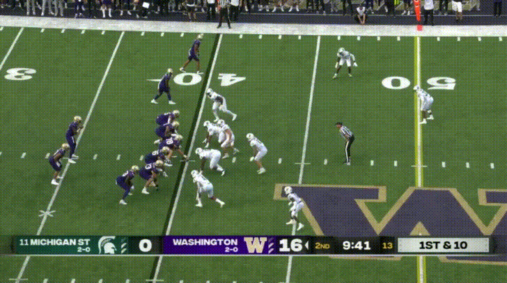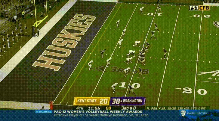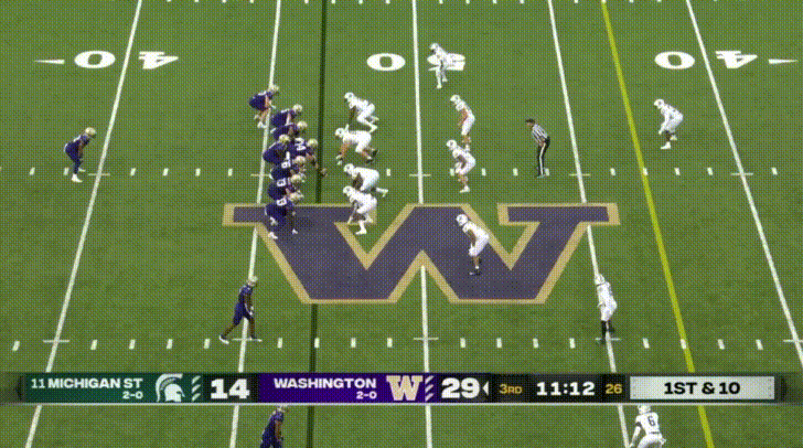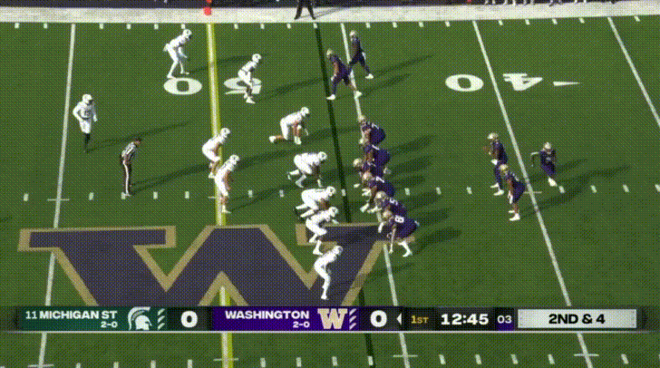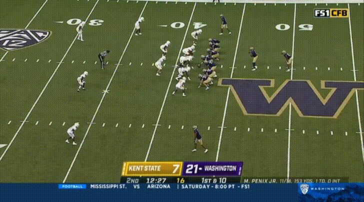 UW will use play-action, jet sweeps, and spread the field with their receivers’ routes, looking for holes in the defense for an explosive play. A lot of these types of throws rely on timing, something Penix showed control over since their very first game: