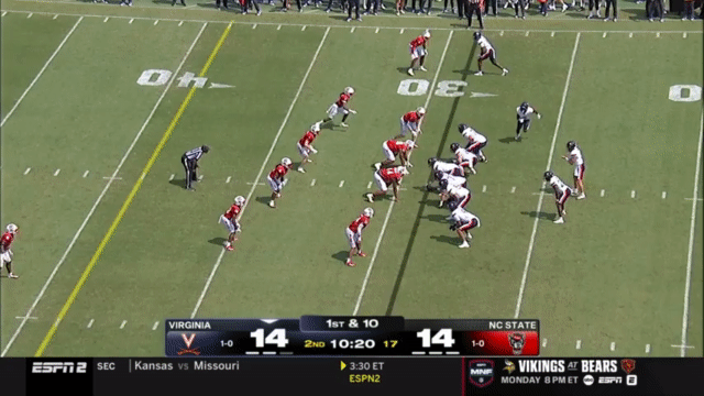 With Twitty out, TE Sage Ennis has received most of the TE snaps in his stead. Virginia will use deception to get their tight ends involved in the passing game: