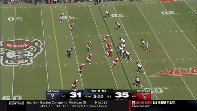 On the other hand, Virginia has suffered some special teams miscues this year. For example, this bad snap on the punt cost Virginia a safety: