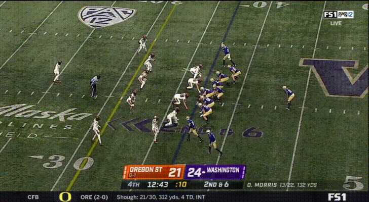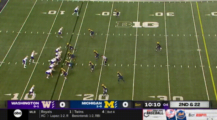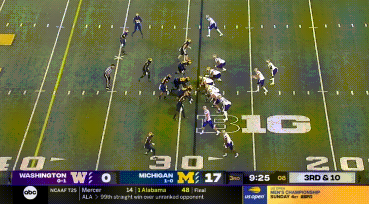 Despite the talented running backs, the Washington run game has been struggling so far this year. Even though Washington has a ton of talent on the offensive line, so far they have not been playing up to their potential. Teams have seemingly gone after the redshirt freshman LG Julius Buelow and RT Victor Curne, but the more experienced OC Luke Wattenberg and RG Henry Bainivalu haven’t been playing well either. Their best offensive lineman, LT Jaxson Kirkland, struggled against Michigan, but he was being matched up with another very talented NFL Draft prospect (DE Aidan Hutchinson, who beat Kirkland a few times). I am not sure why the offensive line has regressed since last season, but their running backs have struggled to take off as they are often being met behind the line of scrimmage, which keeps forcing Washington into obvious passing situations. The performance of the Washington offensive line is something to keep an eye on.