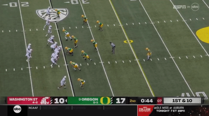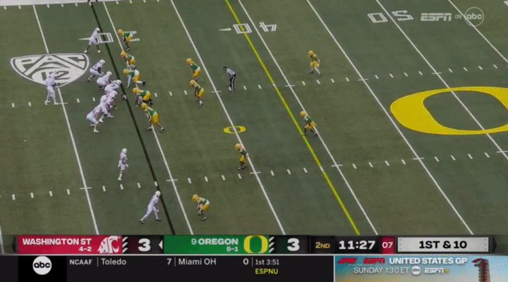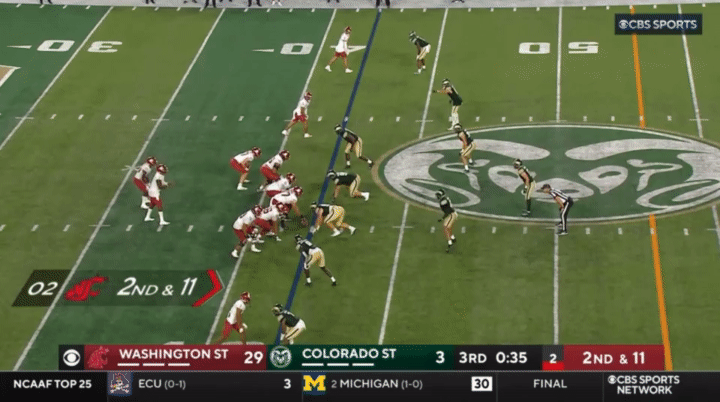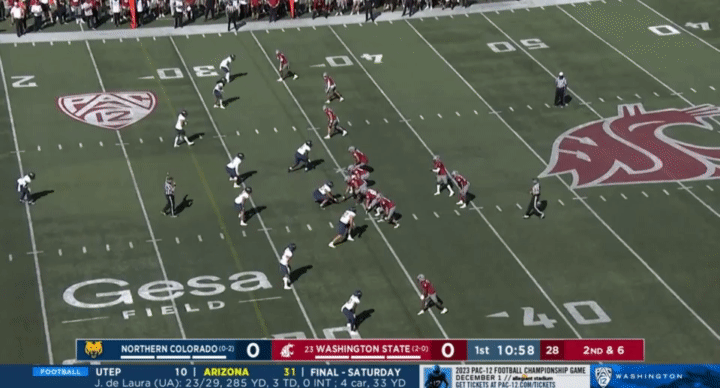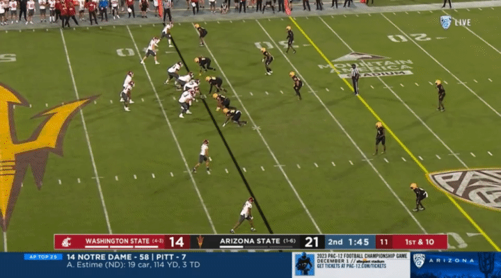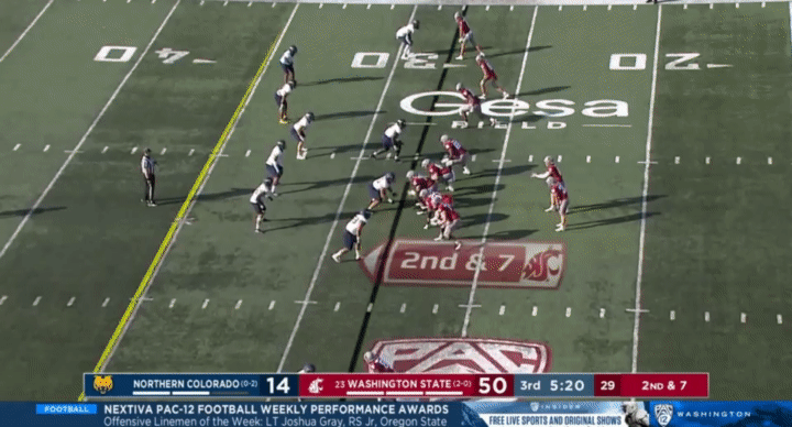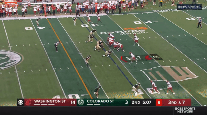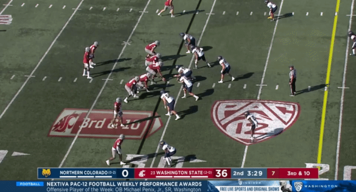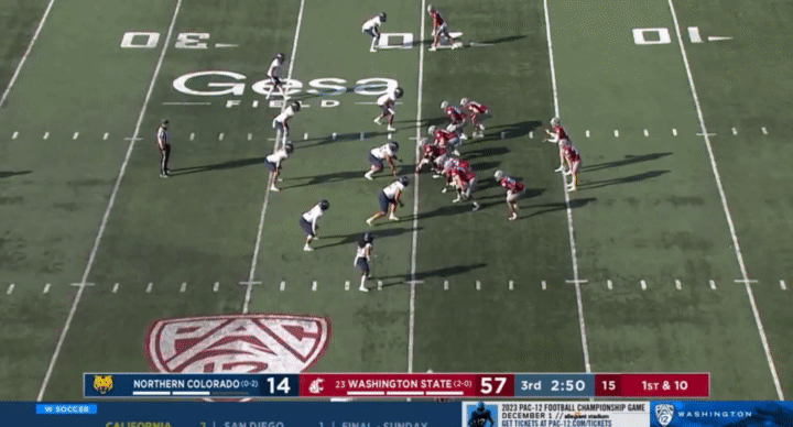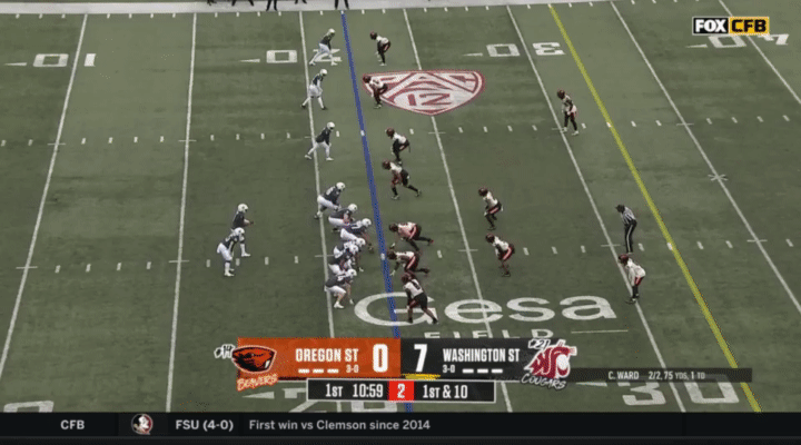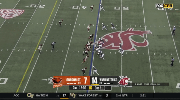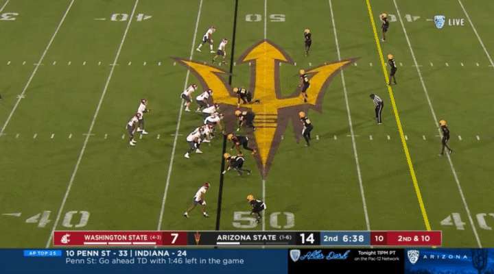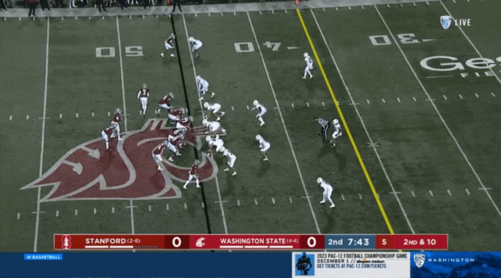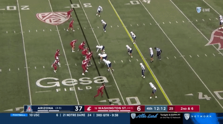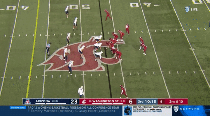 Because Wazzu is reluctant to run Ward too hard, they often sub in the backup quarterback, John Mateer, to run a lot of the RPO-type plays. Wazzu has used Mateer mostly as a gadget player, so generally if Mateer is in, it’s probably a designed quarterback run:
