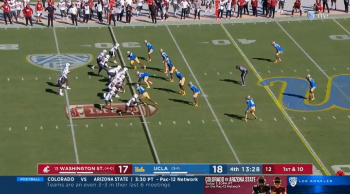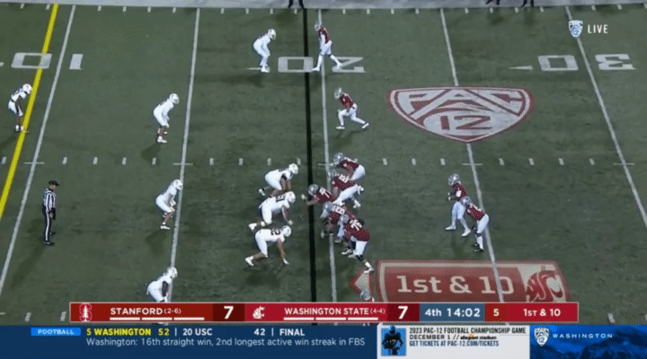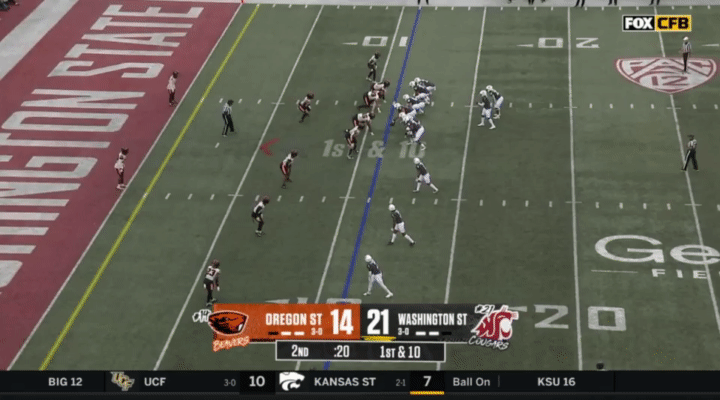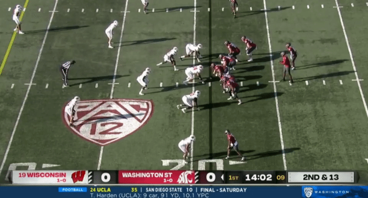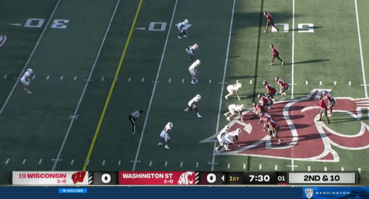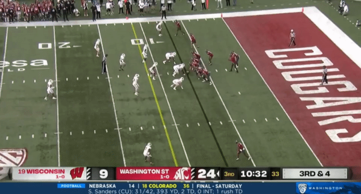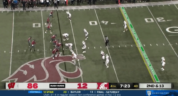 Another thing I wanted to point out to watch for is snaps. For whatever reason, Wazzu has had a number of bungled snaps this season, but it’s mostly turned out okay for them. Here’s a couple examples I pulled from the Wisconsin game, for instance: