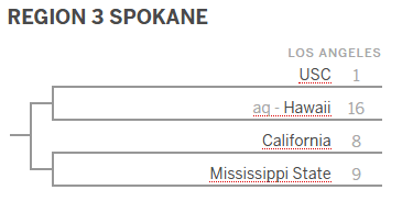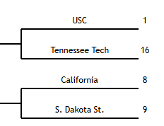 And in case you’re as obsessive as I am, here’s one more projection. The NCAA’s official website from Autumn Johnson also projects Cal has an 8 seed across from 1 seed USC in an . . . oddly formatted mock bracket: