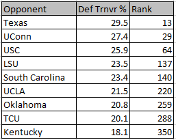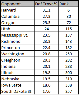 Hey, I warned you a month ago I was going to do exactly this. It’s time for the opponent defensive turnover percentage chart: