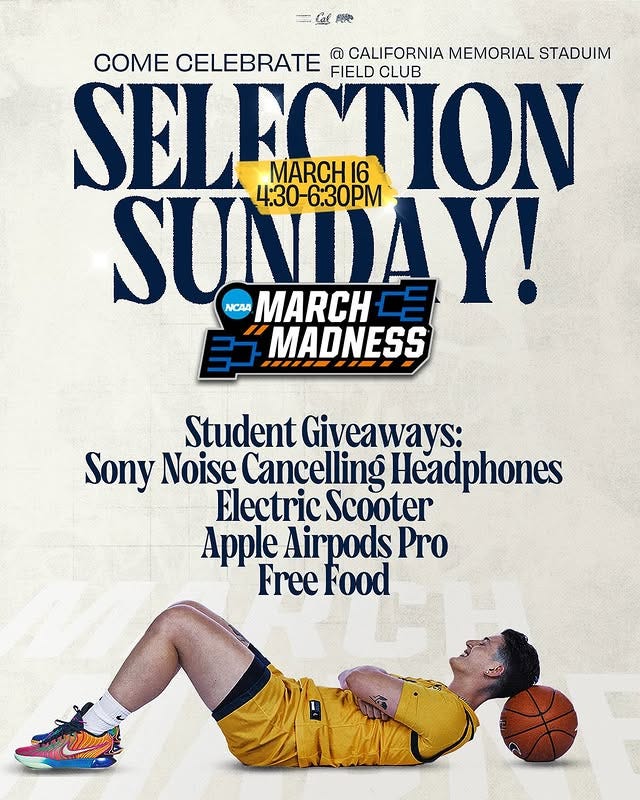 If you’re able, try to make it out to Cal’s Selection Sunday party at the Memorial Stadium Field Club: