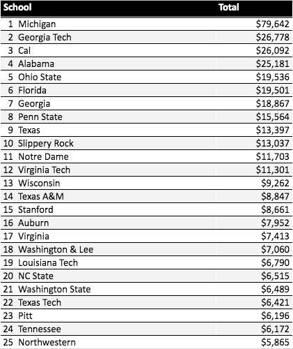 · Outpaces or keeps up with nearly every school in the competition, except Michigan – because Michigan always wins. (No, but seriously - name your college football powerhouse. We either matched or outraised them by the close of Friday, despite the much, much smaller nature of our fanbase.)