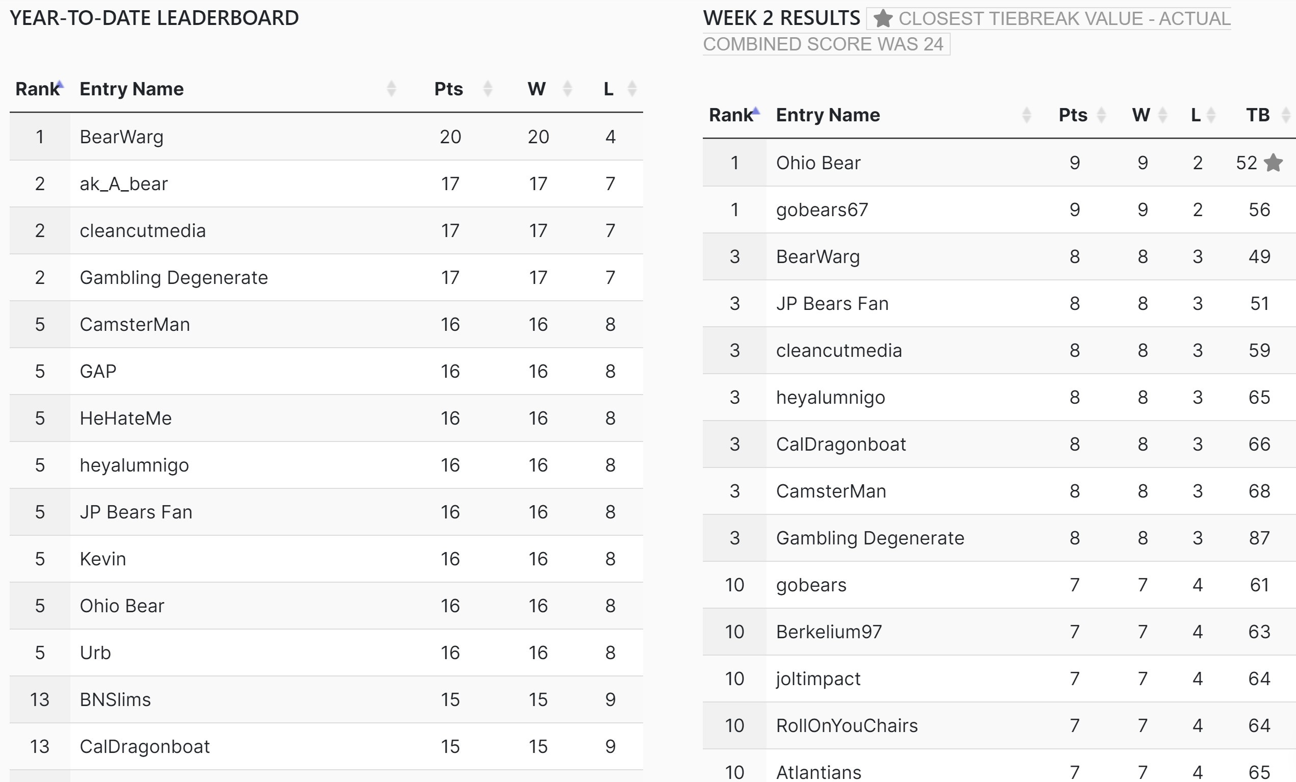 We’ll have you with our updated standings every week!