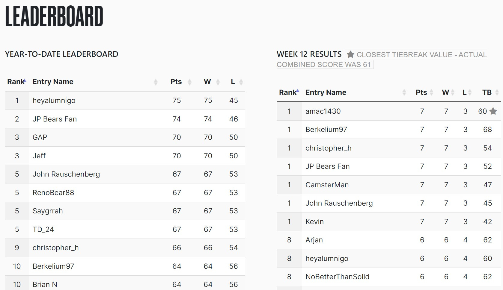 Share with your friends and family to see who has the best prediction skills. You can also set up private pick’em and survivor pools for most major sports! To learn more go to Runyourpool.com.